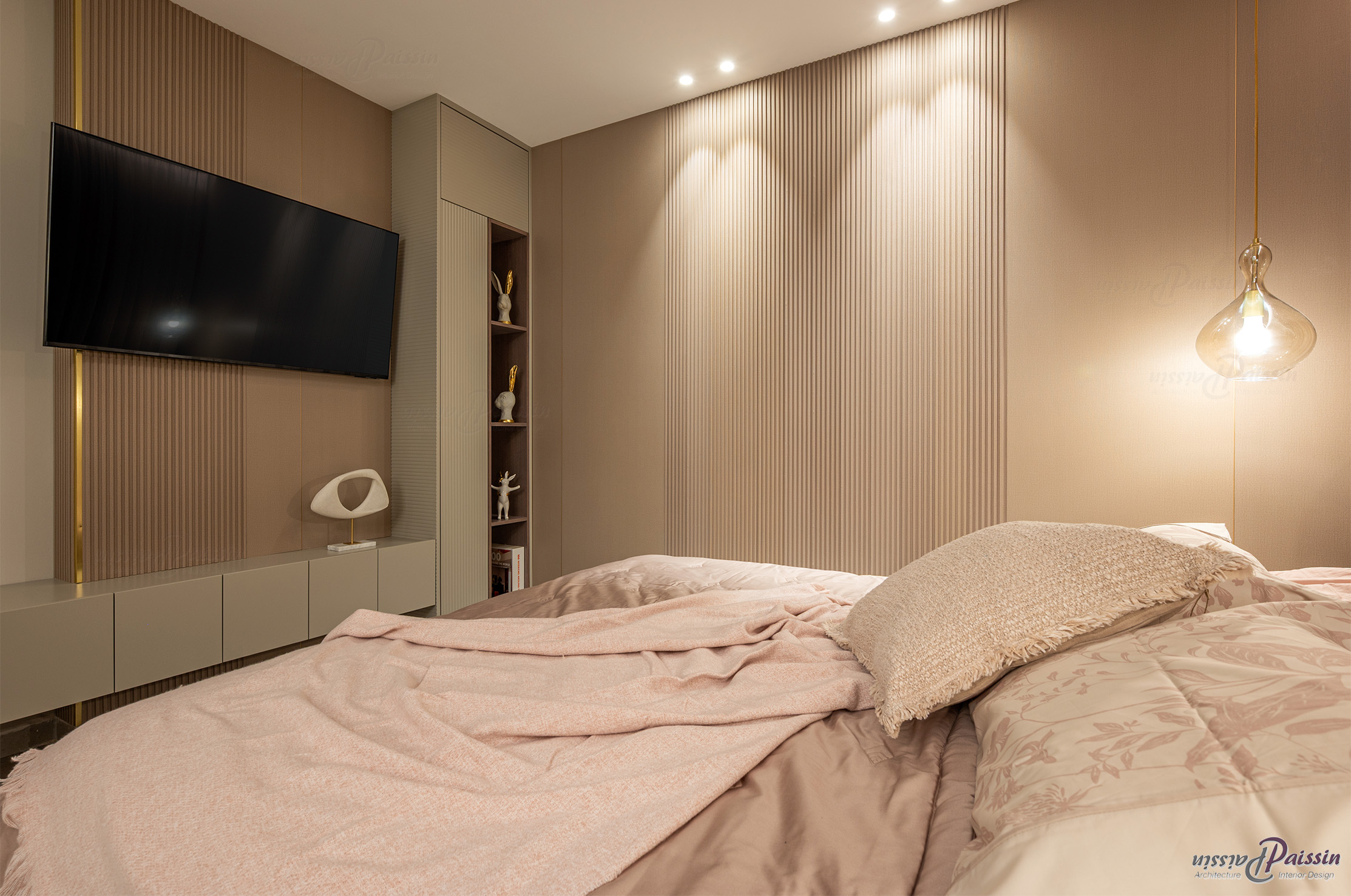 העיצוב משלב סגנון קלאסי מודרני עם נגיעות של עיצוב פנים לבתי יוקרה, סלון פתוח למטבח, ואלמנטים עדינים של שיק אלגנטי בחדר שינה מפנק.